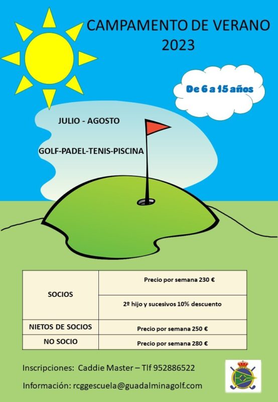 Sirva el presente para informarles que la Escuela de Golf del RCG Guadalmina ha planificado un Campamento Intensivo de Golf para verano en los que sus hijos se encuentran de vacaciones. Los detalles de este campamento son los siguientes: